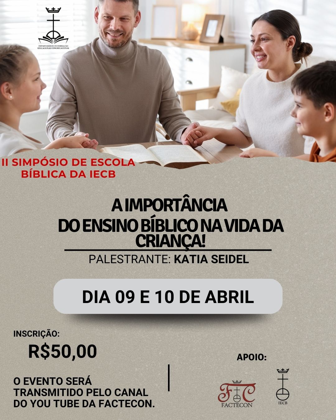 O tema do II Simpósio é: “A IMPORTÂNCIA DO ENSINO BÍBLICO NA VIDA DA CRIANÇA”. Com o tema, queremos propor a reflexão, aos pais e aos professores e professoras de escola bíblica, sobre a importância do ensino da Bíblia na vida das crianças. Com tal proposta, intentamos o fortalecimento do ensino bíblico, e salientamos que consideramos que este já está acontecendo, e que temos de valorizar este ensino e procurar soluções para melhorar ainda mais os processos envolvidos, tanto em casa quanto na escola bíblica.